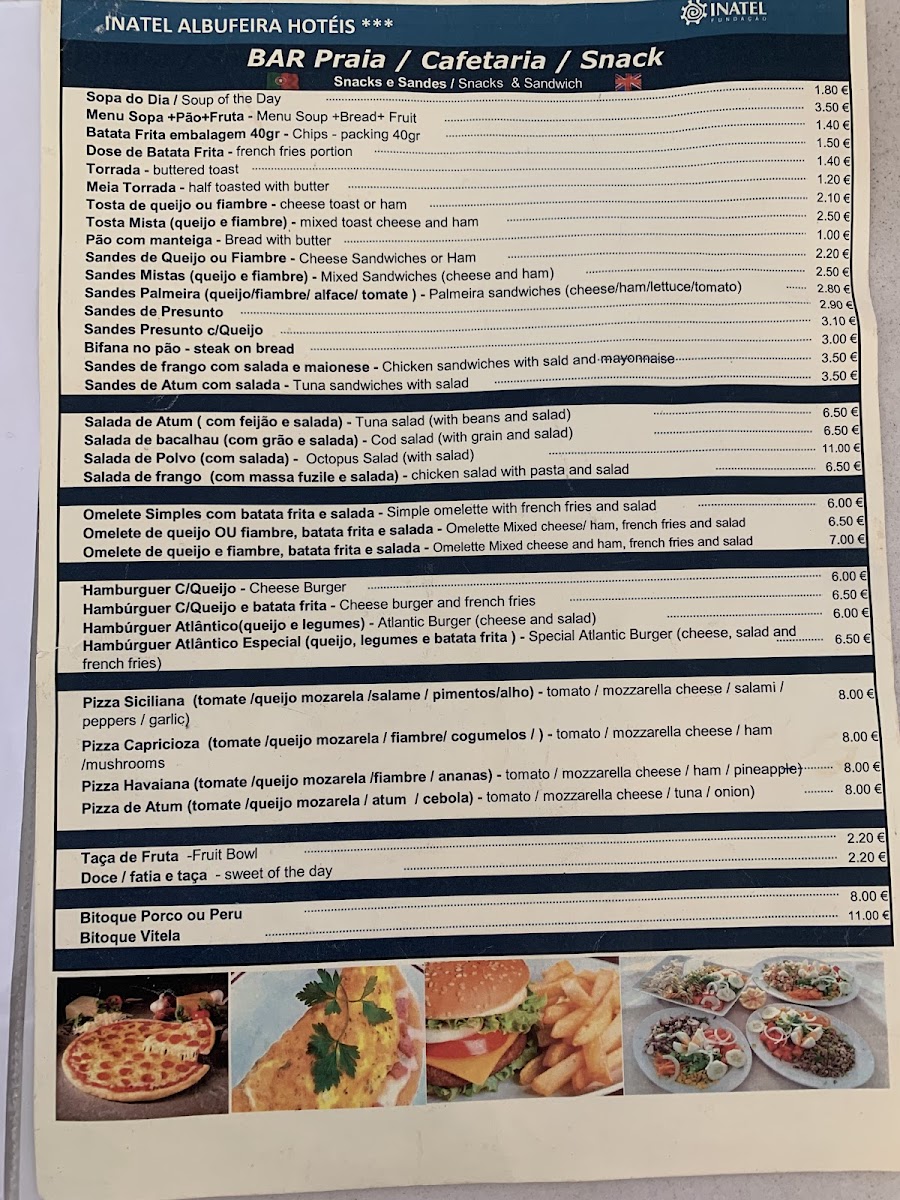 At Inatel Cafetaria, our menu embraces the simplicity and comfort of a classic café experience, inviting you to unwind with light bites and satisfying drinks while soaking in the stunning views of the beach and sea.